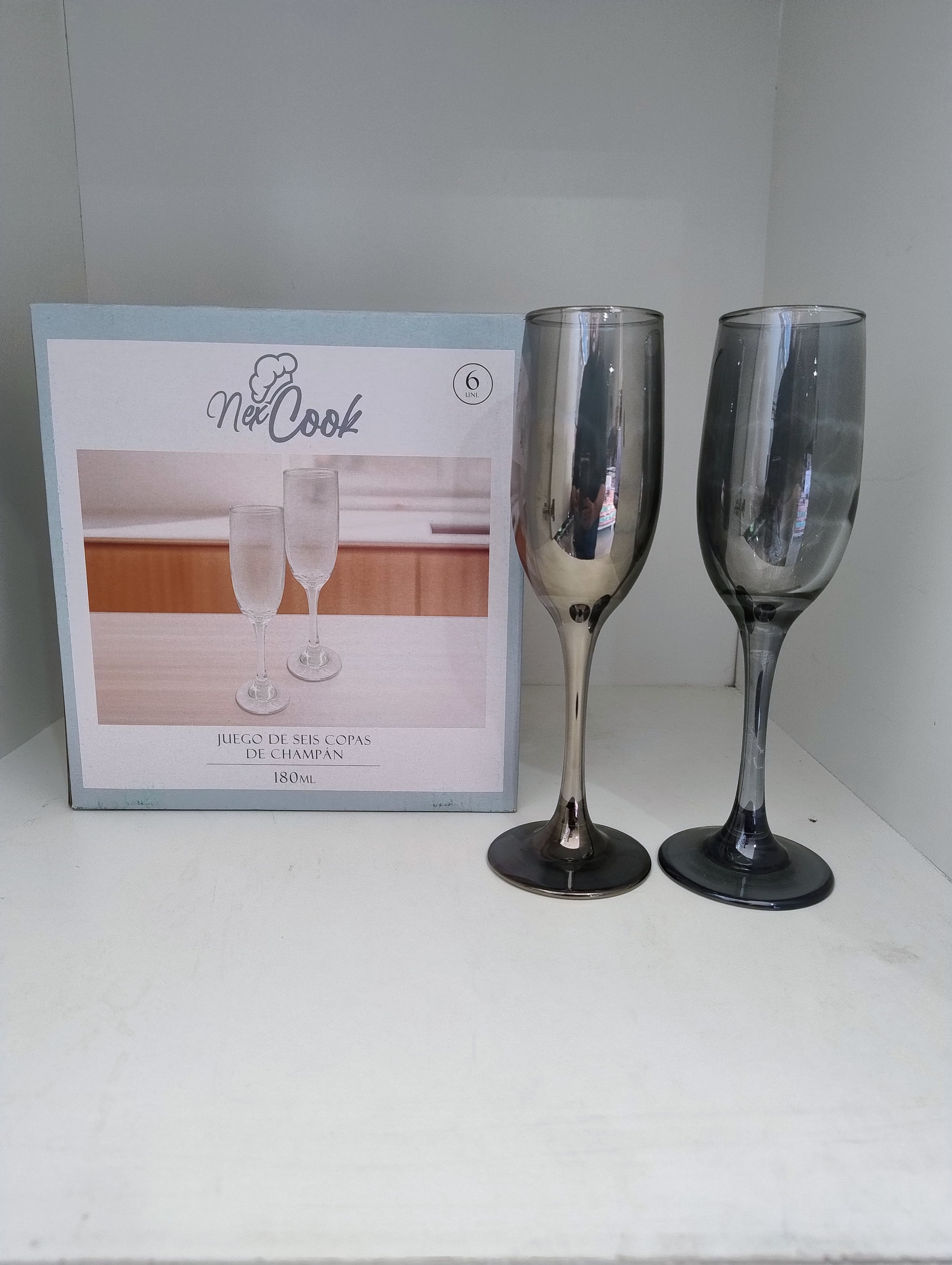 SET COPA CHAMPAGNE 180ML X6 NEGRA CA6062 (K)