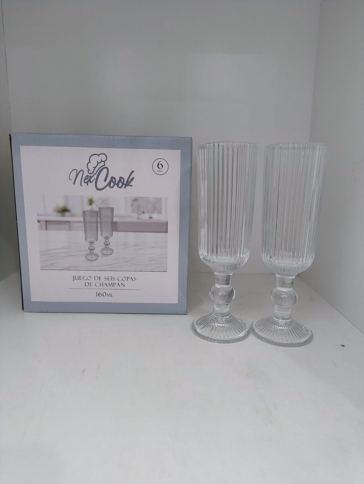 SET COPA CHAMPAGNE 160ML X6 TRANSP. LINEA VERTICAL CA6092 (K)
