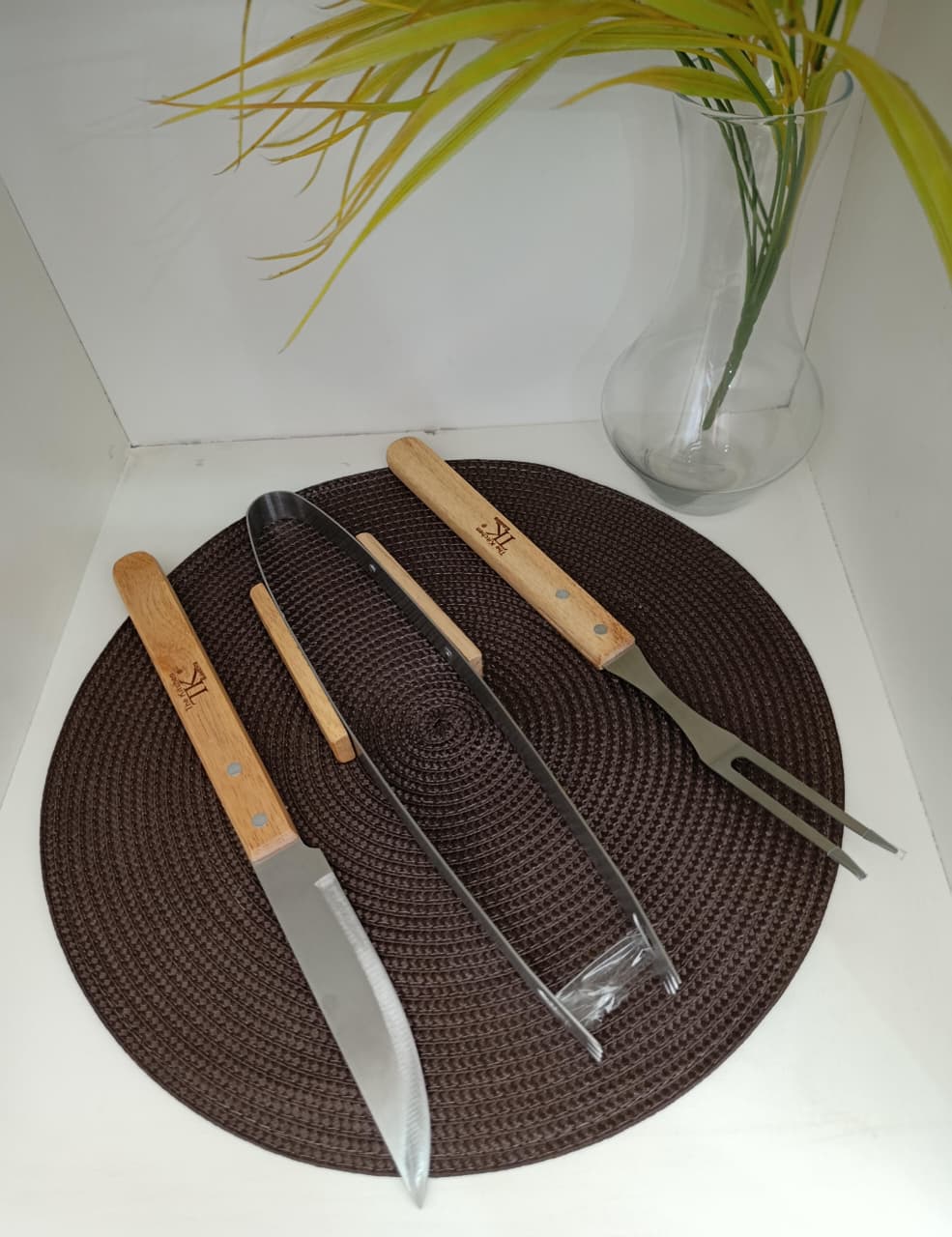 SET 3 PZS CUCH + TENE + PINZA 33CM ACERO M/MADERA 300964