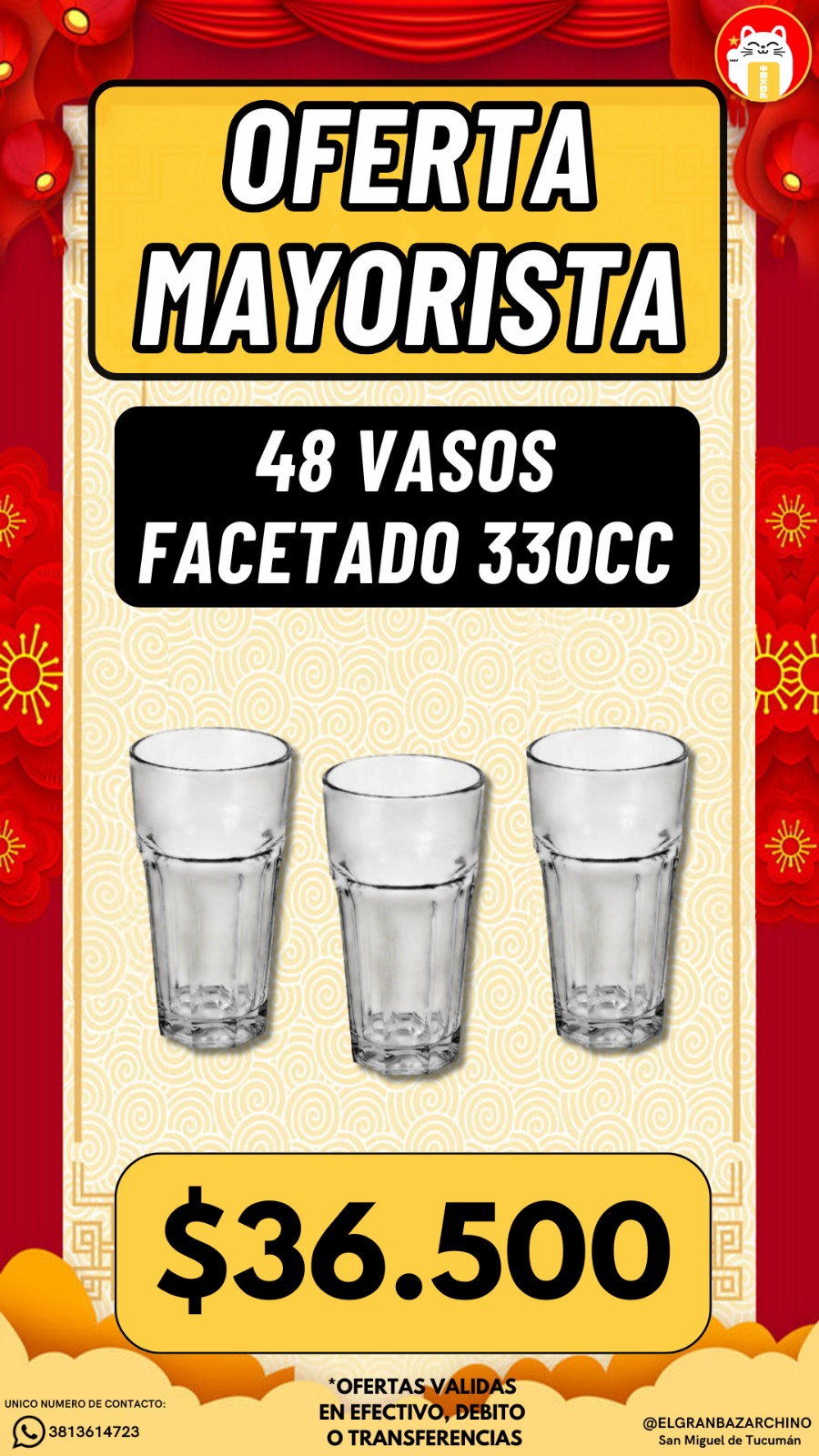 MAYORISTA X48 VASO FACETADO T/LARGO 330ML